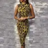 Vestido de fiesta Vintage sin mangas, elegante, estampado, ceñido al cuerpo, Sexy
