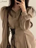 Macheda vestido holgado de manga acampanada para mujer, prenda con una sola botonadura y cintura lateral, ceñido a la cintura, ideal para vacaciones de Navidad, Primavera, 2022