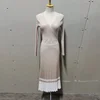 Vestido plisado de punto para mujer, suéter liso de manga larga con cuello en V, vestido de noche largo a la moda para invierno, 2022