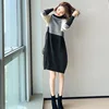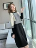 Vestido de punto de manga larga para mujer, medio y largo vestido de lana con cuello redondo, para trabajo y fiesta, otoño e invierno, 2021