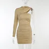Minivestido fruncido de manga larga para mujer, monocolor, ajustado, con un hombro al descubierto, ropa de calle Sexy para fiesta