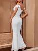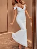 Srubí Vestido largo con espalda descubierta para mujer, vestido largo Sexy de fiesta de verano con lentejuelas blancas, corsé con hombros descubiertos, Vestidos de Noche de cóctel