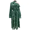 Vestido de verano de manga larga con volantes para mujer, traje Floral con hombro inclinado, para playa