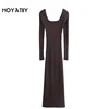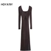 MOYATIIY vestido ajustado Vintage para mujer, prenda de manga larga con escote en V, Espalda descubierta, 2022