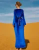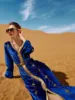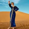 Vestido Sexy de terciopelo azul con diamantes de imitación cosidos a mano, vestido de noche de manga larga para fiesta, vestido francés Retro de lujo, novedad