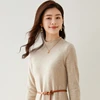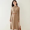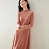 Vestido de punto de cachemira pura para mujer, vestido largo cálido de Cuello medio alto, a la moda, 100%