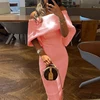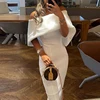 Vestido de fiesta de primavera para mujer, falda larga informal de color puro, diseño elegante en capas, hombros descubiertos, lazo ajustado