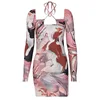 Vestido ajustado de manga larga para mujer, prenda Sexy con estampado de glúteos, escote cuadrado, para noche, cumpleaños y Club