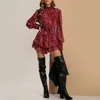 Vestido corto informal con volantes para Mujer, minivestido con estampado Floral, cintura alta, cuello redondo, primavera 2022