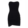 Vestido de corsé sin tirantes para mujer, Sexy, fruncido, doble capa, forro, malla elástica antideslizante, ajustado, corto, negro