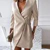 Vestido informal de manga larga para mujer, vestido femenino de fiesta con cuello en V, cinturón lateral, Blazer, Color liso, para otoño