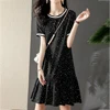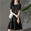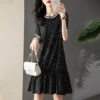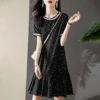 Vestido de seda con lunares pequeños para mujer, moda china, elegante, Regular, cuello redondo, 2020