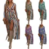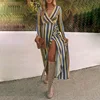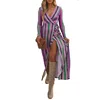 Vestido largo con estampado a rayas para mujer, ropa Sexy de manga larga con cuello en V, con cordones, para fiesta, Primavera, 2022