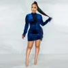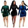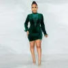 SKMY Vestido corto de terciopelo de cintura alta para mujer, prenda Sexy de manga larga con retales de plumas, ropa de invierno para fiesta, 2021