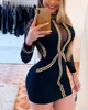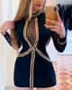 Vestido ajustado de manga larga con diamantes de imitación para mujer, minivestido Sexy para fiesta y Club, moda de otoño, 2021