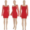 Wishyear negro Vestido corto de manga larga para mujer, traje Sexy ajustado de malla transparente para fiesta y discoteca, Primavera, 2022