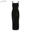Macheda vestido con tirantes finos y estampado de caracteres chinos para mujer, traje Vintage ajustado con abertura en la cadera, moda de otoño, novedad de 2019