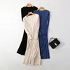 HLBCBG vestido suéter largo de manga larga para mujer, vestido grueso de corte en A, entallado, tejido, Otoño e Invierno