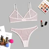 Conjunto de ropa interior Sexy para mujer, Bralette transpirable con lencería de malla transparente de lunares, sujetador Invisible
