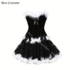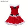Vestido de corsé rojo con falda de plumas blancas para mujer, traje Sexy de Papá Noel, liguero superior de corsé negro, vestido de corsé rojo