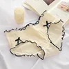 Bragas de algodón para mujer, ropa interior femenina de cintura media, Sexy, sin costuras, con lazo, novedad