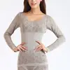 Ropa interior térmica de encaje para mujer, conjuntos elásticos con forma, sin costuras, con estampado, para invierno, 2022