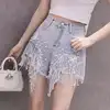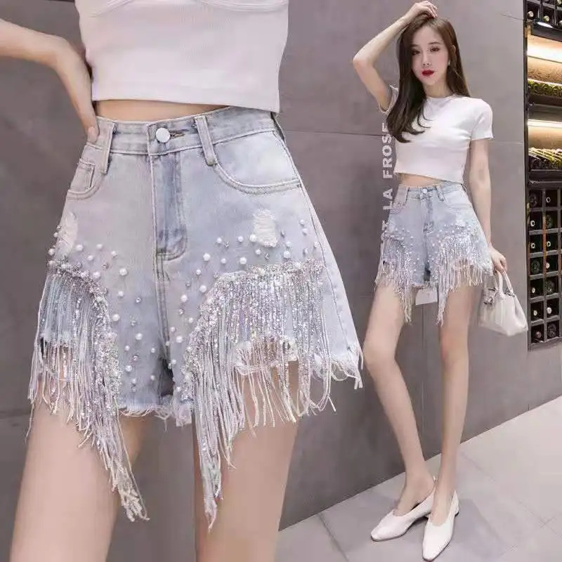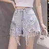 Pantalones cortos vaqueros de cintura alta para mujer, vaqueros con flecos y lentejuelas de diamante, primavera y verano, 2021
