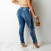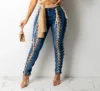 RStylish 2021 verano ropa de las mujeres Mediados de cintura Criss Cross ojal de vendaje elástico moda Jeans lápiz