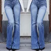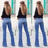Pantalones vaqueros de moda para mujer, pantalón acampanado de cintura alta con bolsillos y parches