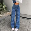 Nuevo estampado Harajuku mujer dividir Mujer Vaqueros Vintage Retro suelto de cintura alta pantalones vaqueros bombachos Streetwear estética Pantalones