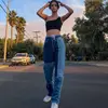 Pantalones vaqueros Cargo de retales para mujer, Jeans rectos de cintura alta con botones, estilo Retro Punk