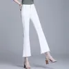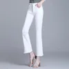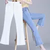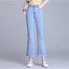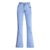 Vaqueros de cintura alta para Mujer, Vaqueros sencillos de color azul liso, ajustados, longitud hasta el tobillo, acampanados, Otoño, 2021