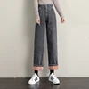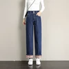 Pantalones vaqueros gruesos de terciopelo para mujer, Jeans de pierna ancha de cintura alta a la moda, Jeans informales de terciopelo, Invierno