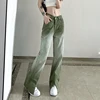 Pantalones vaqueros De cintura alta Para Mujer, ropa De calle Vintage, verde degradado, Sexy, holgados, rectos, con abertura, Para Mujer