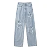 Pantalones vaqueros rasgados de cintura alta para mujer, jeans sueltos de hip hop 5XL, jeans rasgados Retro para mujer, ropa de calle kz69 2020