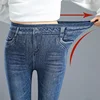 Skinny Jeans For Women High Waist Pencil Pants Elegant Push Up Stretchy Tight Pants Streetwear Trousers Warm Winter Leggings