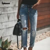 Ladguard pantalones vaqueros ajustados de cintura alta para mujer, ropa de calle para chica, rasgados, Sexy, 2021