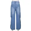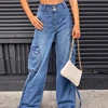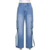 Y2K pantalones vaqueros rectos azules para mujer, Vaqueros Cargo Vintage de cintura alta, Harajuku, con retales cosidos, Vaqueros holgados de estética de los años 90
