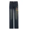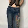 Pantalones vaqueros acampanados con patrón de mariposa para mujer, pantalón coreano de tiro bajo, pierna ancha, informal, holgado, Retro, ropa de calle, otoño