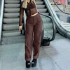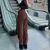Pantalones Cargo Vintage para mujer, Vaqueros holgados Grunge de cintura alta, ropa de calle marrón, chándal recto