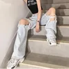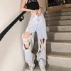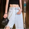 Vaqueros Mom rasgados de cintura alta para mujer, pantalones vaqueros finos holgados para novio, petos, pantalones rasgados Vintage para mujer de verano