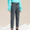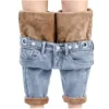 Pantalones vaqueros con cremallera para mujer, pitillos con bolsillos, cálidos, de lana, invierno, 2021