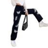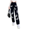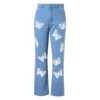 Pantalones vaqueros de cintura alta con estampado de mariposa para mujer, pantalón de pierna recta informal, a la moda
