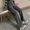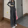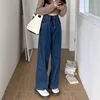 Pantalones vaqueros de pierna ancha de cintura alta para mujer, Pantalón recto de talla grande con cordones, ropa de calle coreana para niña, Otoño, 2021