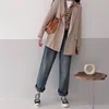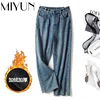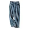 Pantalones vaqueros de cintura alta para mujer, ropa vaquera de pierna ancha, ropa de calle azul, pantalones de felpa de moda Vintage 2021