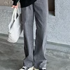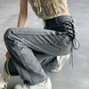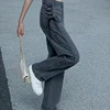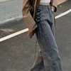 Pantalones vaqueros de pierna ancha para mujer, Jeans rectos de cintura alta, informales, de diseño suelto, color gris ahumado, de invierno