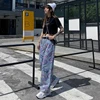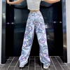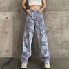 Pantalones vaqueros de cintura alta para mujer, Vaqueros rectos y2k con patrón de impresión, vaqueros de pierna ancha con realce