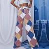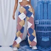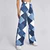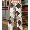 Pantalones vaqueros Vintage holgados con bolsillos para mujer, Vaqueros estampados a cuadros, moda de otoño, vaqueros de pierna ancha de cintura alta con botones