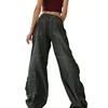 Pantalones vaqueros con estampado gris para mujer, Vaqueros cintura alta y holgados de pierna ancha, ropa de calle femenina, Otoño, 2021