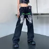 Pantalones vaqueros estampados para mujer, Jeans rectos holgados de cintura alta elástica, tendencia, moda urbana, Otoño, 2021